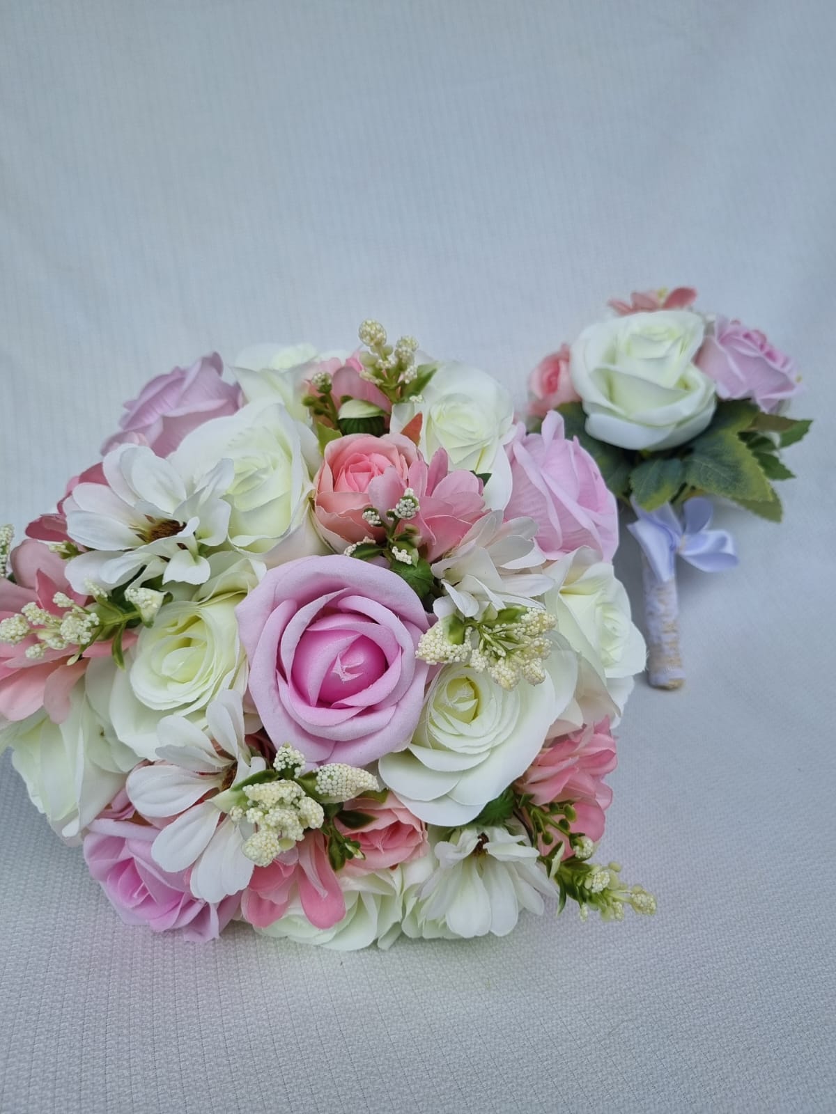 ✨ Kit com buquê cerimonial + buquê mini para jogar em tons de rosa com branco ✨